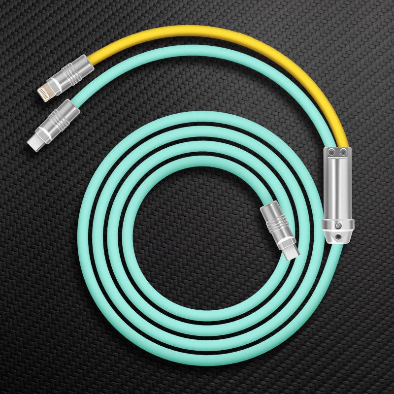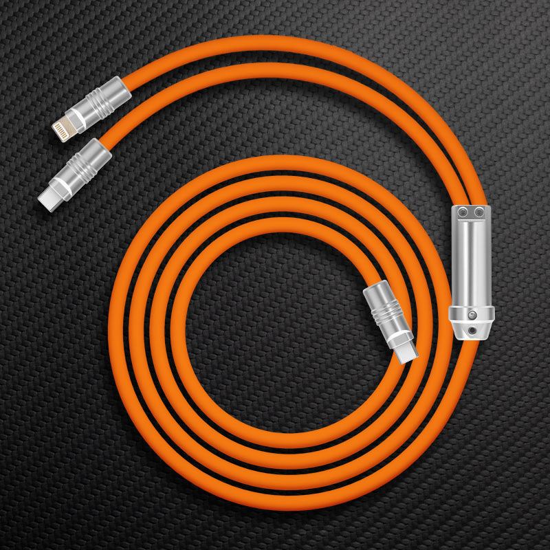 This cable has 2 connectors that can charge 2 devices simultaneously, such as smartphones, tablets, laptops, etc. No need to carry multiple cables for different devices anymore.