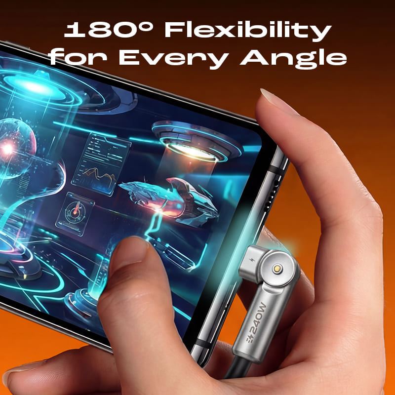 Designed to adapt to different usage angles, the dual 180° rotating connector reduces stress at the plug and allows comfortable charging while gaming, browsing, or working. The rotating structure helps minimize cable bending and improves long-term durability.