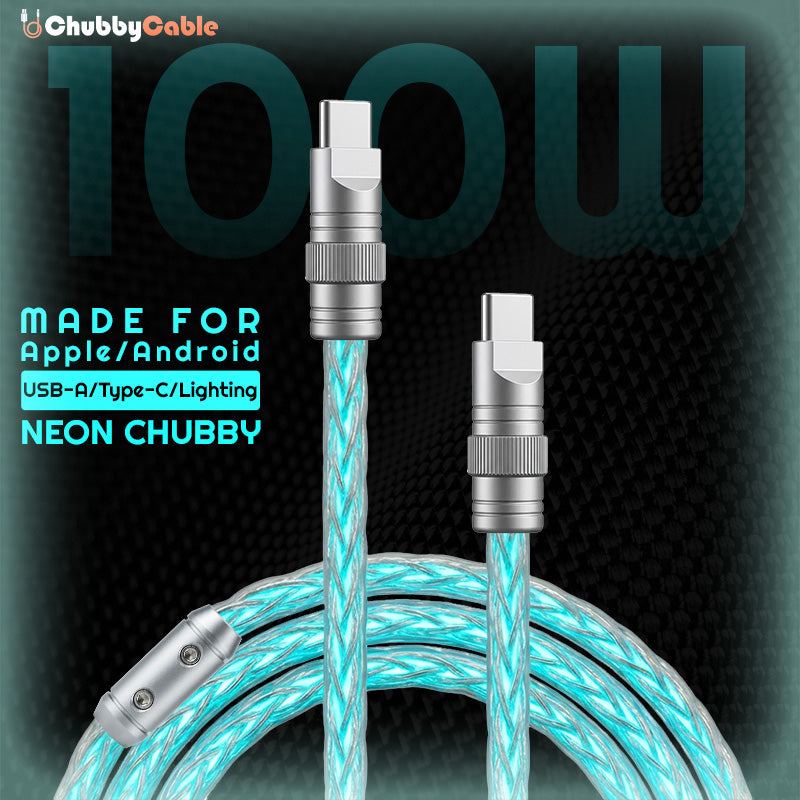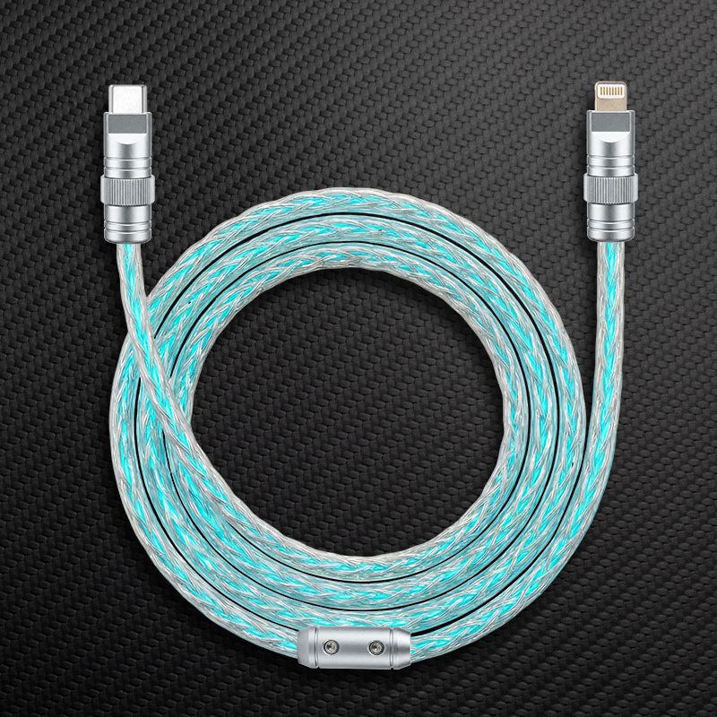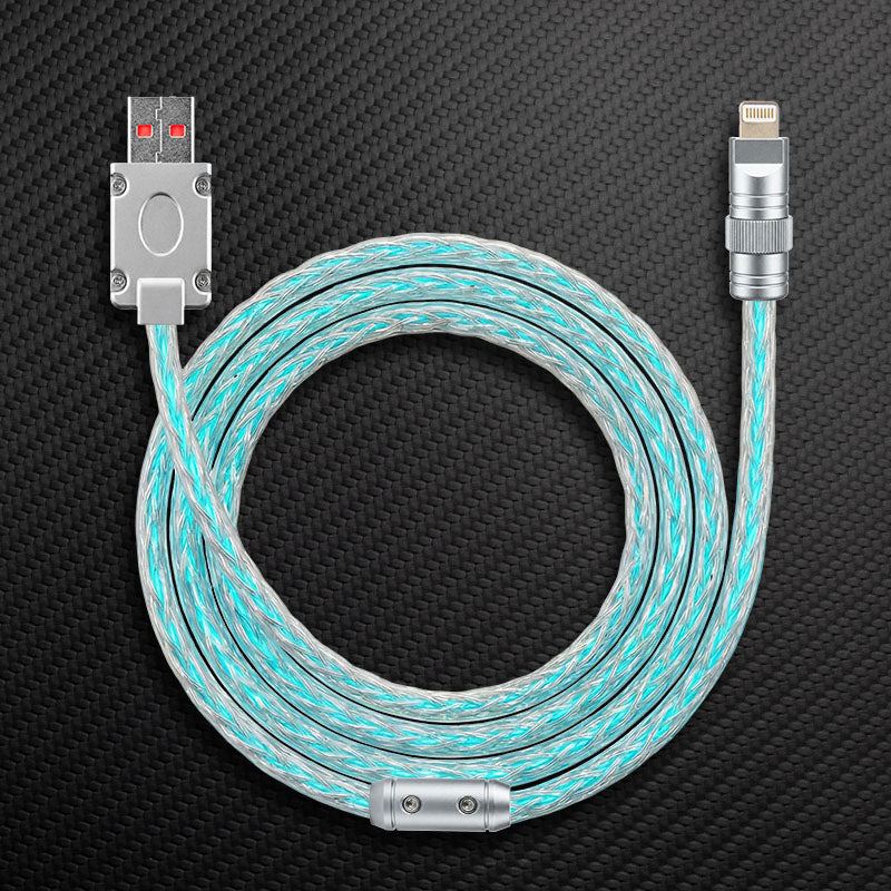 「ネオンチャビー」RGBイルミネーションシルバーメッキ急速充電CarPlayケーブル