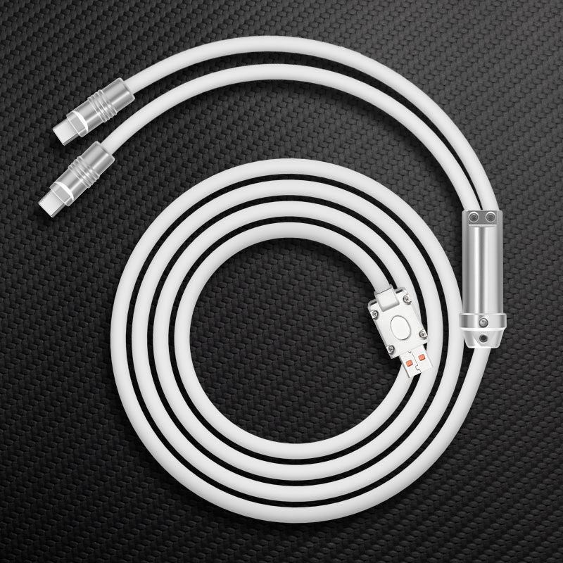 This cable has 2 Type-C connectors that can charge two C-end devices simultaneously, such as smartphones, tablets, laptops, etc. No need to carry multiple cables for different devices anymore.