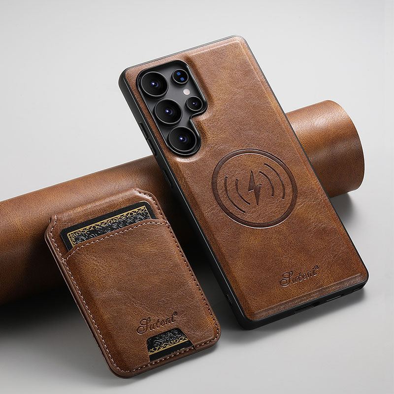 ChubbyArmor LuxeFlip – 2-in-1 Magnetic Leather Case with Detachable Wallet & Flip Stand for Galaxy S26