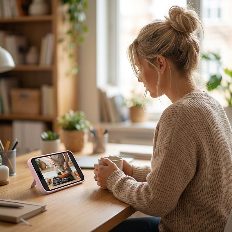 Built‑in invisible pivot stand offers versatile viewing support, allowing multiple stable angles for hands‑free video, calls, and work in any scenario.