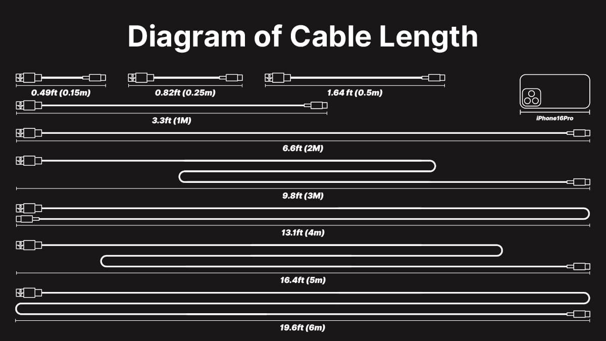 - Cable Length: 1M (3.3ft), 2M (6.6ft),9.8ft (3M)