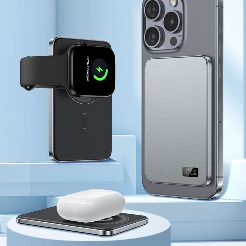 Stay powered up on the go with the 3-in-1 MagSafe Magnetic Power Bank. With its strong magnetic attachment, ultra-thin design, and versatile charging modes, it's the perfect accessory for your daily power needs.
