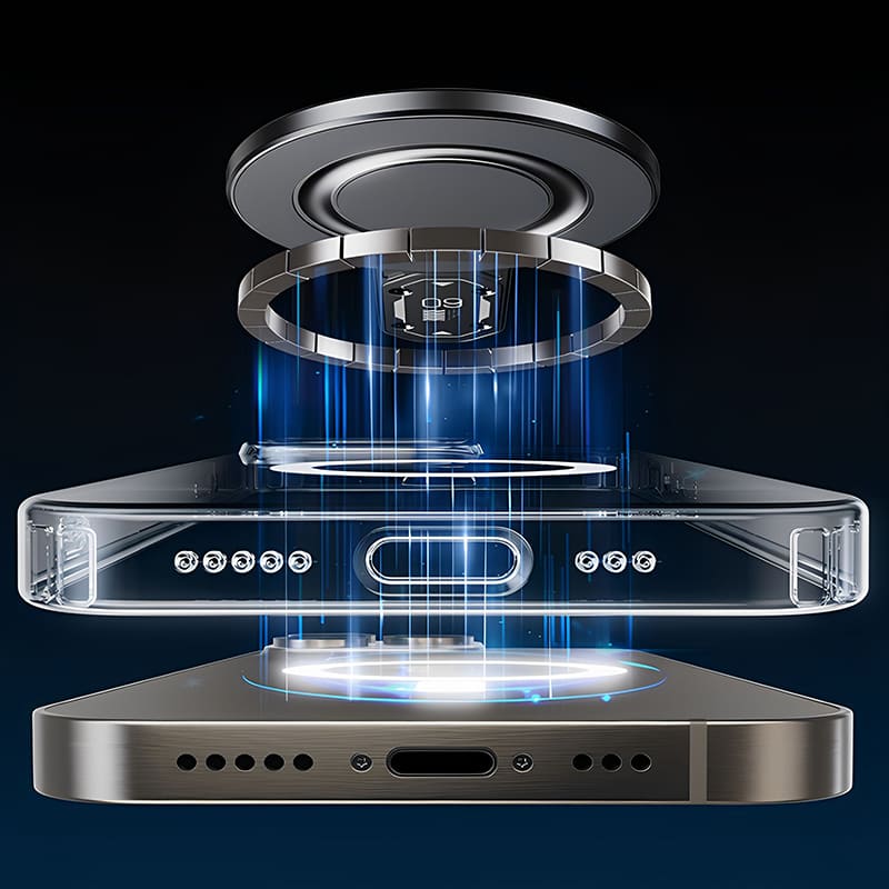 Soft-touch silicone ring doubles as a phone grip. Tested for extreme tension and pulling force — it’s comfortable, secure, and safe for all-day carry.
