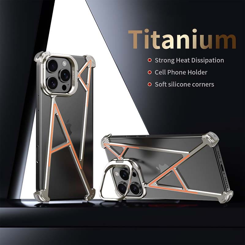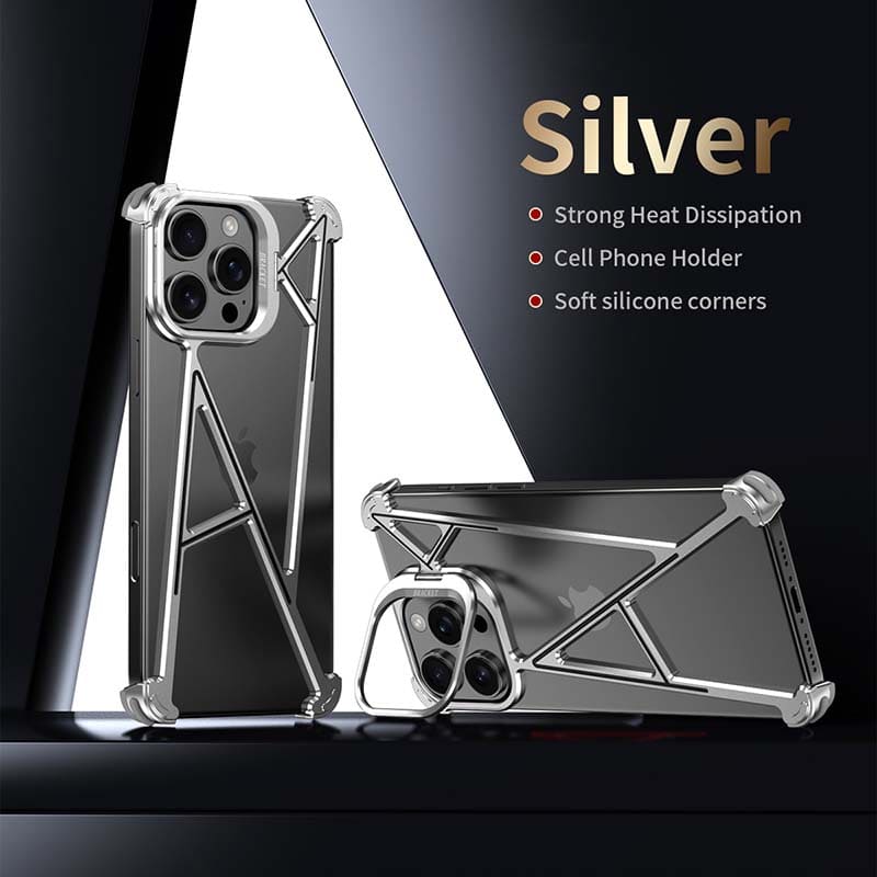 A-Series Metal Borderless Shockproof Case with Adjustable Lens Stand for iPhone