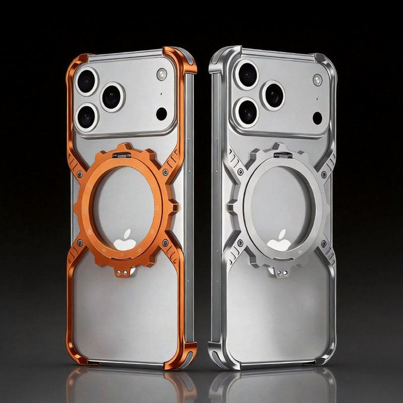 Drawing inspiration from sophisticated mechanical watch dials, this case features a striking gear-like appearance that not only enhances the aesthetic but also provides tactile feedback.