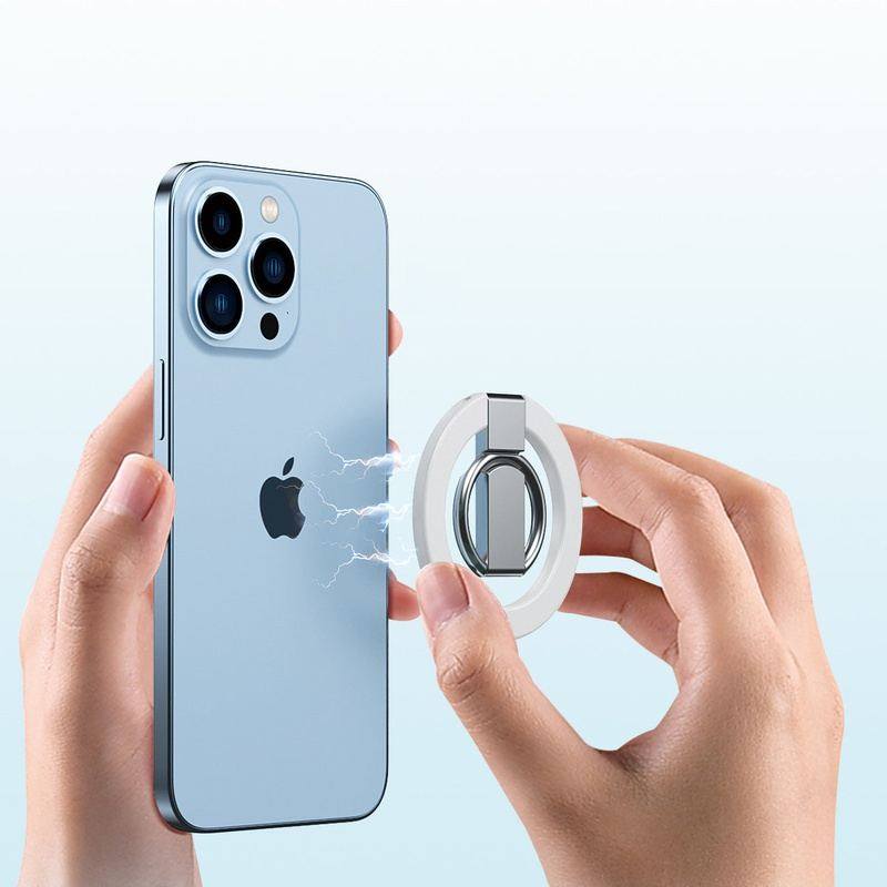 Equipped with a strong magnetic piece, this ring holder guarantees a firm and secure grip. Strong built-in magnets work with MagSafe. Uses a strong magnetic sheet to attach firmly to your phone or case, without leaving any sticky residue.
