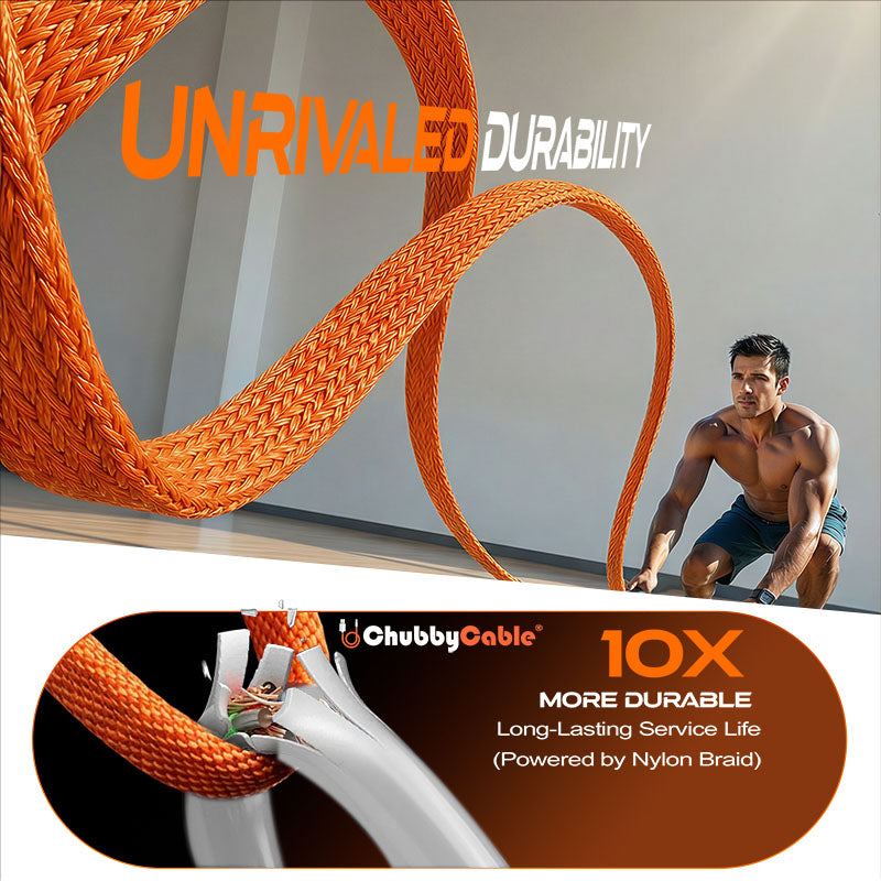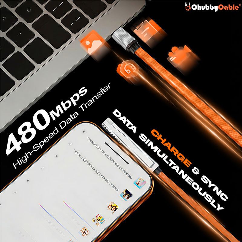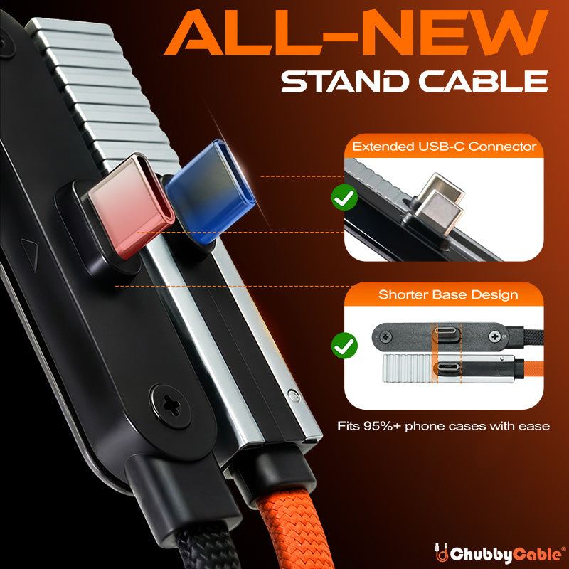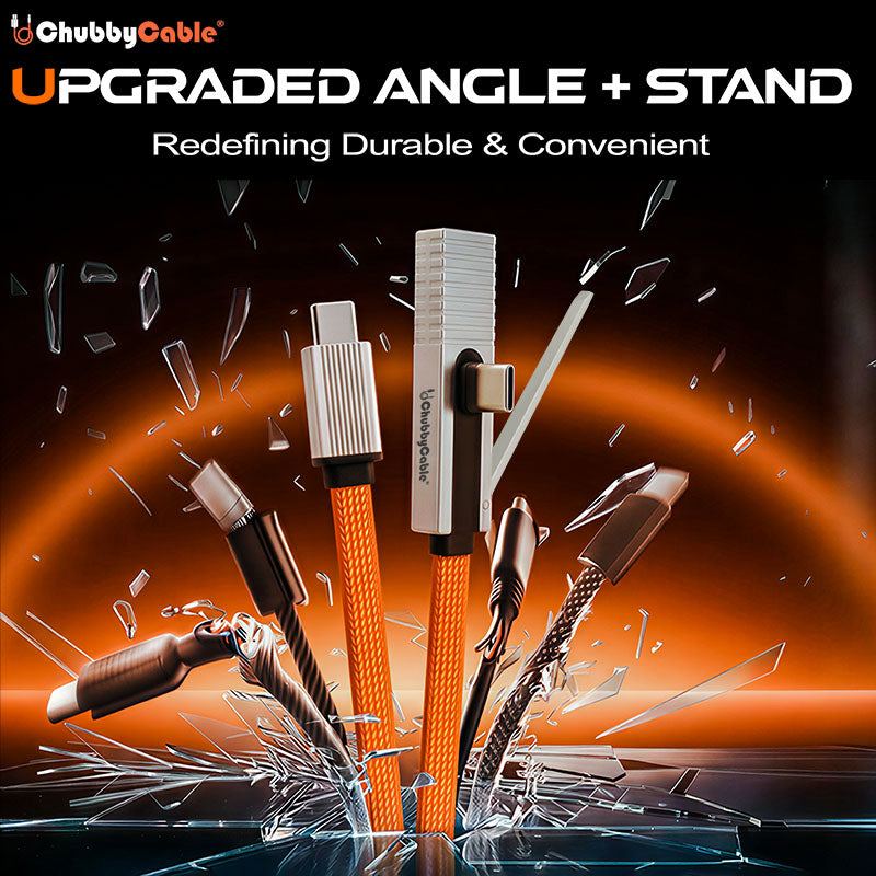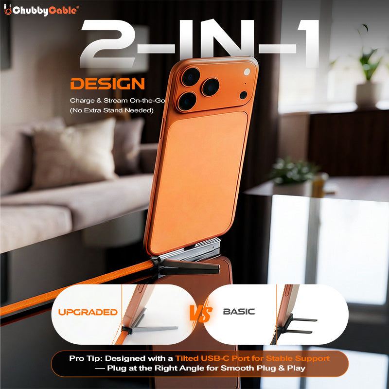 ChubbyCable StandLite™ Pro - 240W Braided Fast Charge Cable with Zinc Alloy Connectors & Built-in Phone Stand