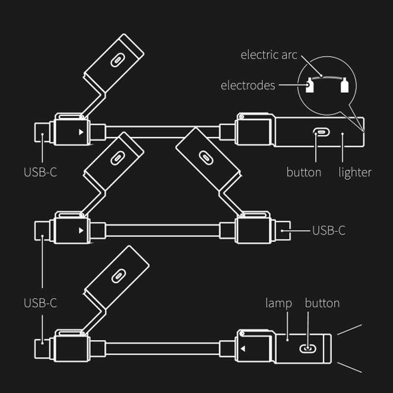 - Input Port: Type-C + LED Light; Output Port: Type-C + Arc Igniter