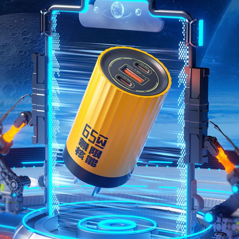 This 65W 3-port GaN charger is equipped with advanced technology to support multiple fast charging protocols for a wide range of devices like smartphones, tablets, and laptops.