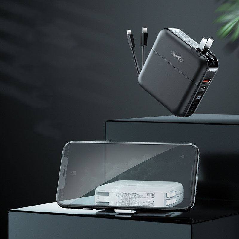 Integrates mobile power, data cable, charger and holder.