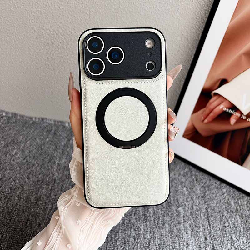 ChubbyArmor - Leather Magnetic Rotating Stand Case For iPhone 17