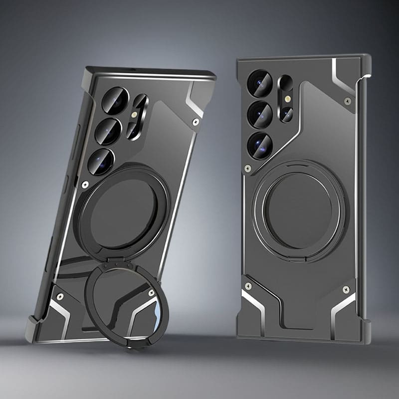 Magnetic Rotating Bracket Transparent Back Metal Phone Case For Samsung
