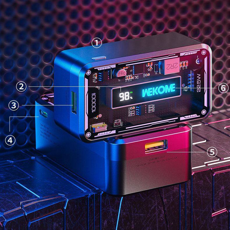 ①: Switch; ②: Smart Display; ③: USB-1 Output; ④: Type-C Input/ Output; ⑤: USB-2 Output; ⑥: Logo