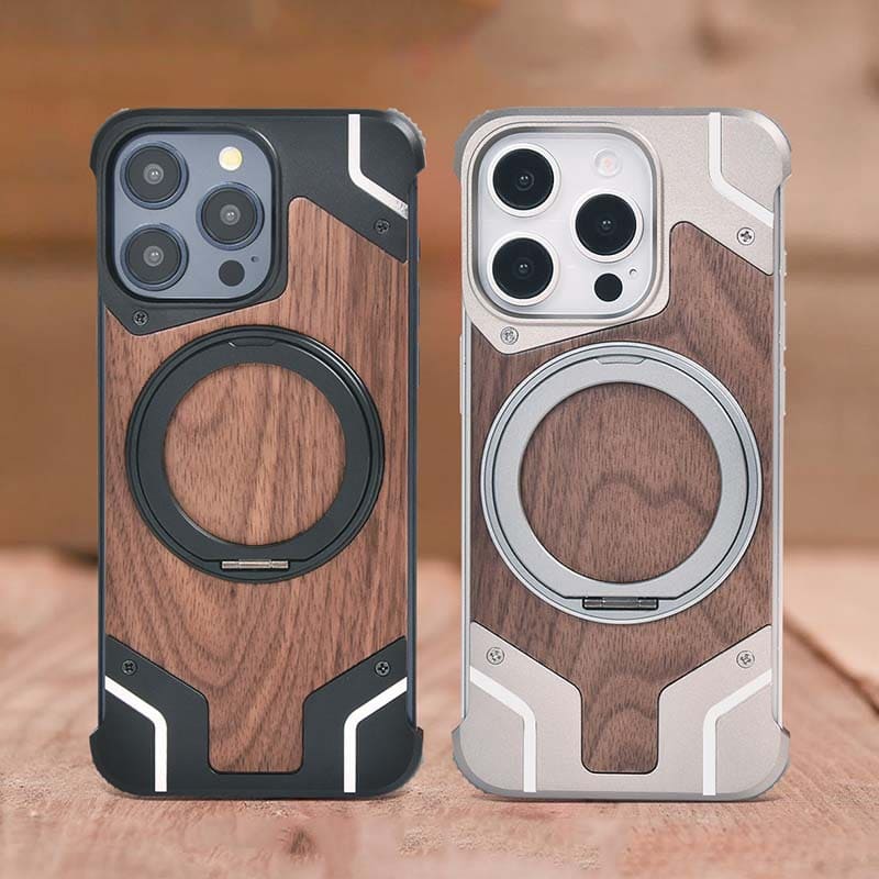 Walnut MagArmor Metal Frame Case – Magnetic Bumperless Shield for iPhone